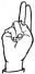 На ћирилици написано ДАМЈАН ДАБИЋ састоји се из 11 слова [?]. Исписано ћириличном једноручном азбуком за глувонеме: